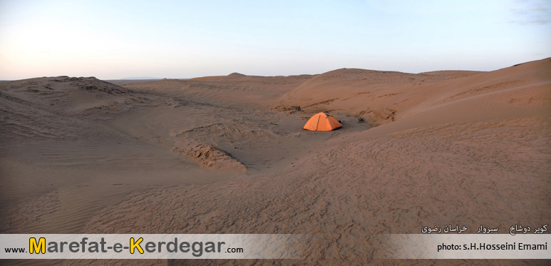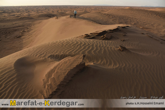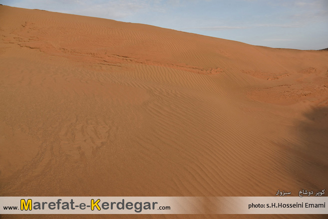 نمایی زیبا از رمل ها و ماسه بادی های کویر دوشاخ