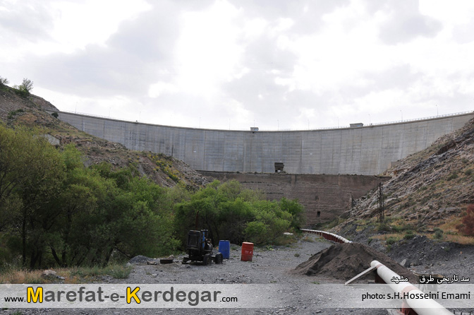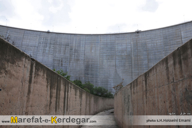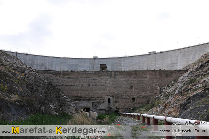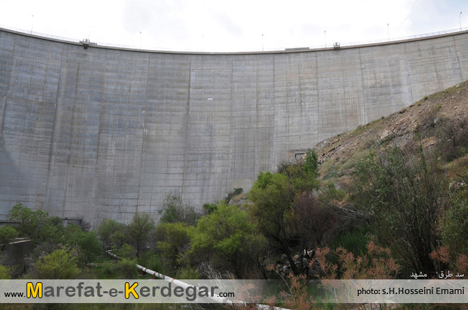 پیچ و تاب رودخانه ای که در نهایت به تاج سد طرق می رسد.