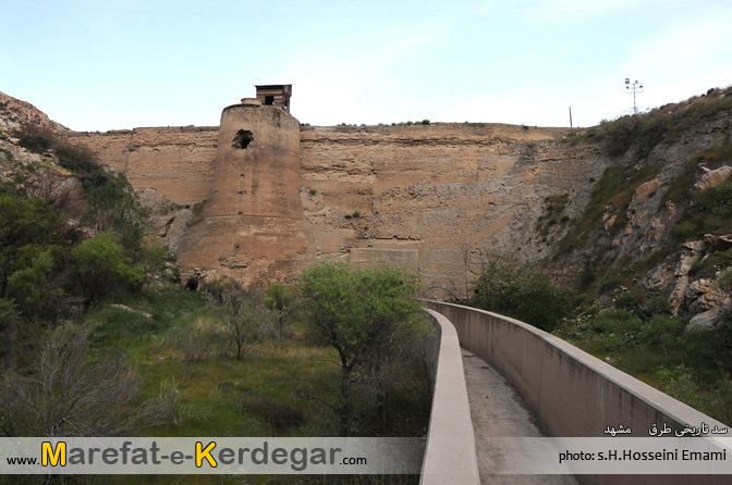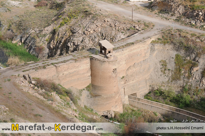 در زمانی دور و در حالی که خبری از تاج بزرگ و با عظمت سد طرق نبود، مردم آن زمان برای استفادۀ بهینۀ از آب، بندی را ساختند که اکنون به بند تاریخی طرق مشهور است. این بند که در آن زمان برای خود، سازه ای عظیم محسوب می شده است، اکنون در برابر سد جدید، هیچ حرفی برای گفتن ندارد و هیبت خودش کاملاً را از دست داده است. این بند، برای دوست داران بناهای تاریخی، سوژه ای جالب به حساب می آید، اما چون تاج سد جدید، در کنار این بند قرار گرفته و حضور افراد در محوطۀ سد، ممنوع می باشد، از حضور گردشگران محروم مانده است.