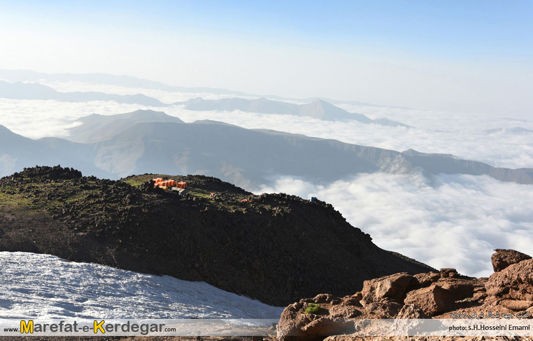 عکسی زیبا از کمپ پیشرفته و پناهگاه تخت فریدون و قله دماوند