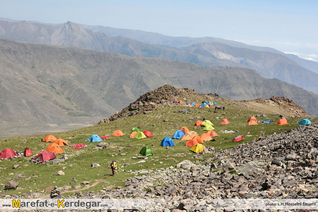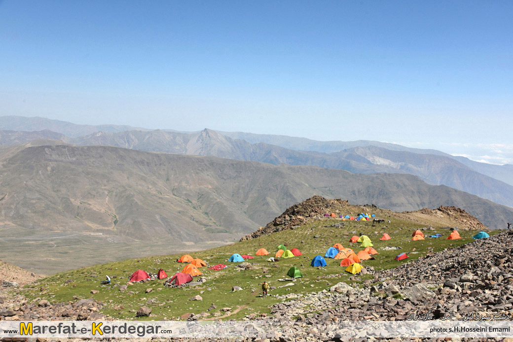 نمایی از کمپ پیشرفته و دشت سبزه لش
