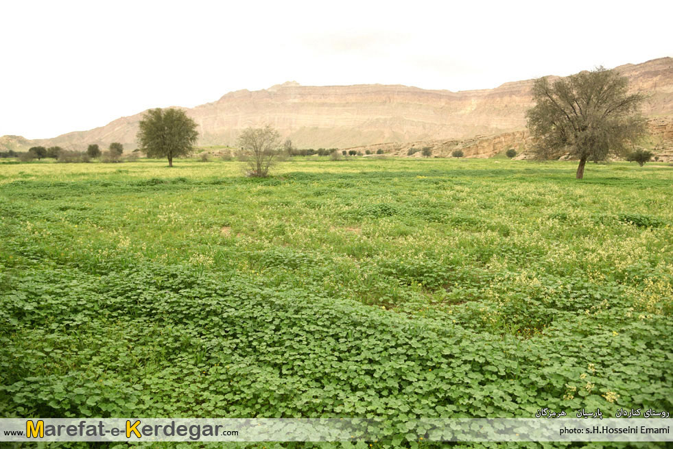 در حالی که از بندر لنگه، عازم پارسیان بودم، در 27کیلومتری شهر پارسیان، رسیدم به روستایی به نام کناردان. دشتی بزرگ در ضلع شمالی روستا، مرا به خودش مجذوب کرد. دشتی سرسبز و پر از درختان تنومند جنگلی. نتوانستم از این منظره، بگذرم و تصمیم گرفتم که گشت و گذاری در این منطقه، داشته باشم. فصل سرسبزی، در منطقه های ساحلی، در آخر اسفند و ابتدای فروردین می باشد و ما در بهترین وقت ممکن، وارد منطقه شدیم. تماشای لذت بخش و فرح آفرین دشت سرسبزی که در امتداد آن، کوه ها و صخره های سر به فلک کشیده، قرار داشت، حقیقتا وصف ناشدنی است و فقط تصاویر می تواند گویای حقیقت باشد. شاید برخی ها با دیدن این عکس های ناب، باور نکنند که آن ها، مربوط به جنوبی ترین نقاط استان هرمزگان و در 10کیلومتری دریا، می باشد، نه شمال و نه غرب کشور. بله، جاذبه های طبیعی شهرهای جنوبی و ساحلی، منحصر به ساحل نمی شود و شما می توانید در فصل بهار، از چنین منظره های خارق العاده، دیدن کنید.