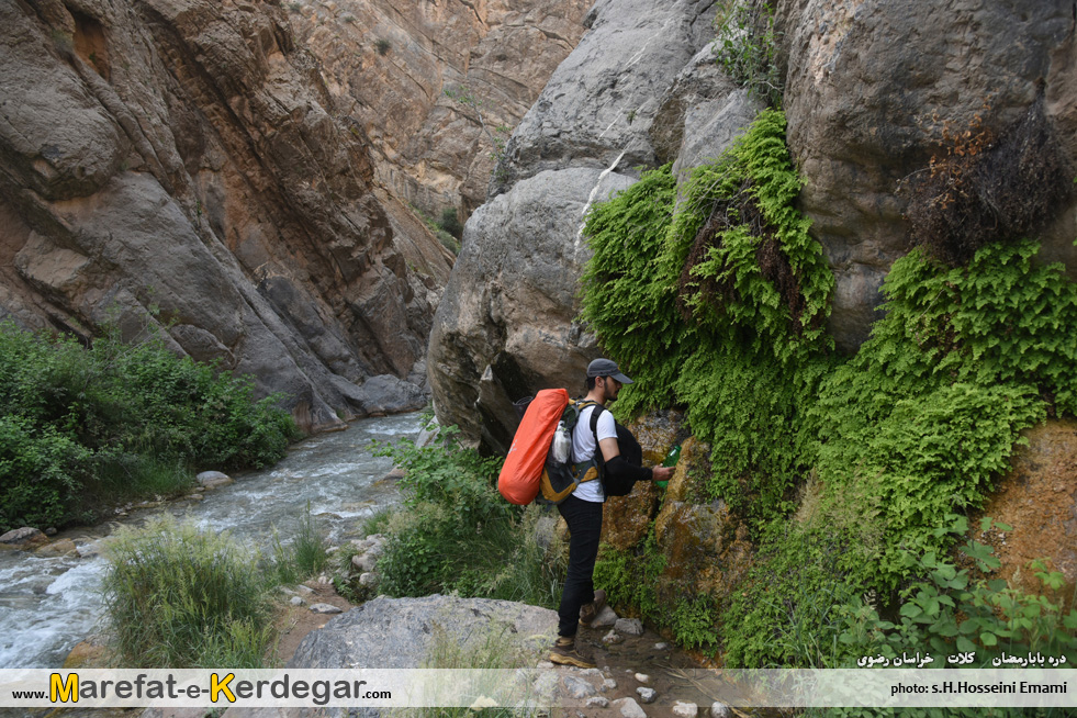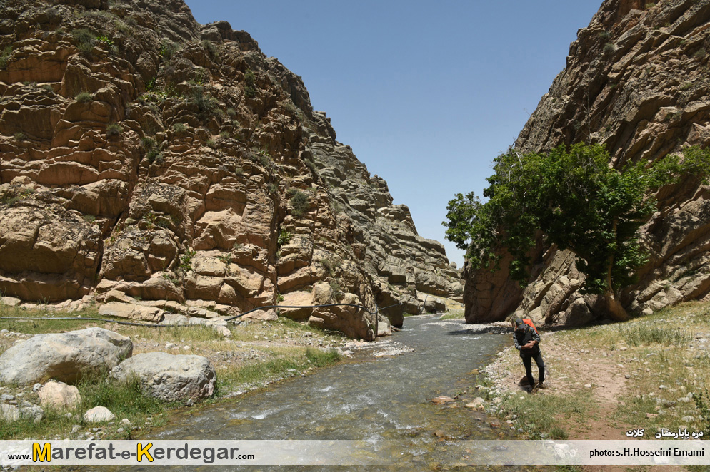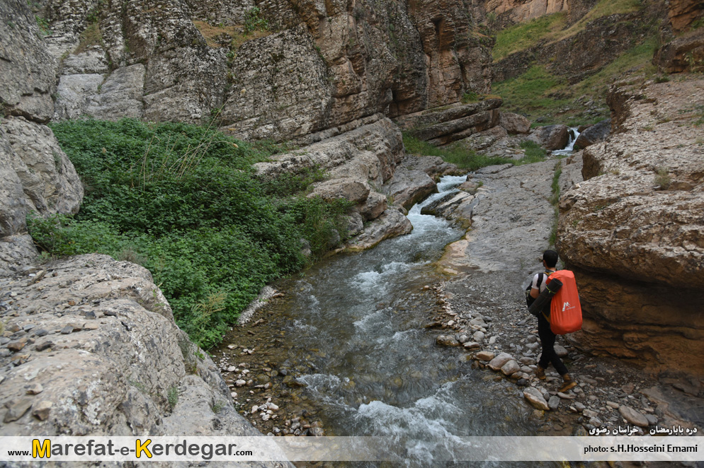 پیمایش کامل این دره، از روستای بابارمضان، تا آبشارهای انتهایی آن، آن هم با کوله سنگین، کاری بس سنگین و طاقت فرسا می باشد. خصوصاً حجم زیاد آب دره که باید مدام به آب زد که علاوه بر خیس شدن کفش و شلوار، پیمایش را بسی دشوار تر و کند تر می کند و در طولانی مدت، عوارضش را در برنامه، نشان می دهد.