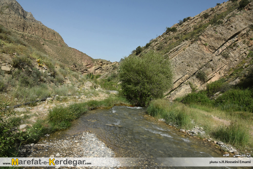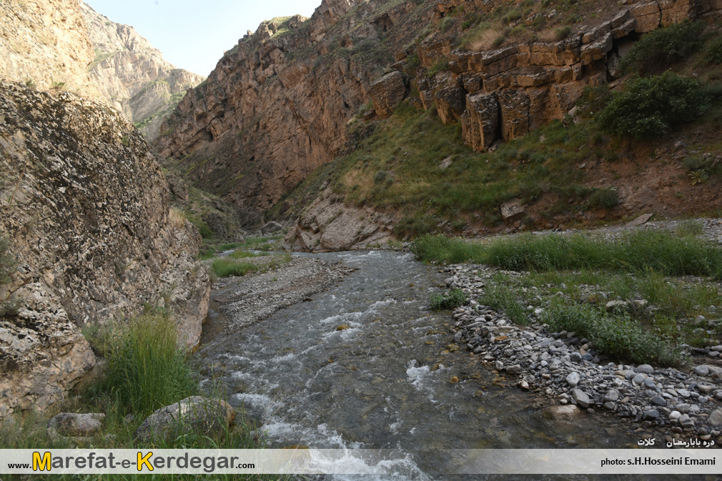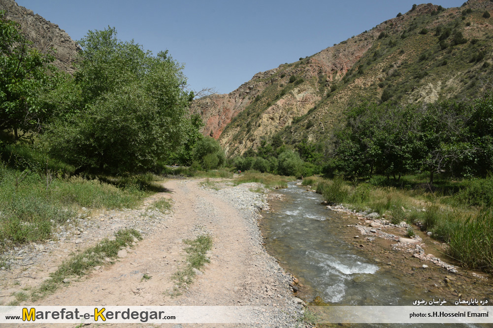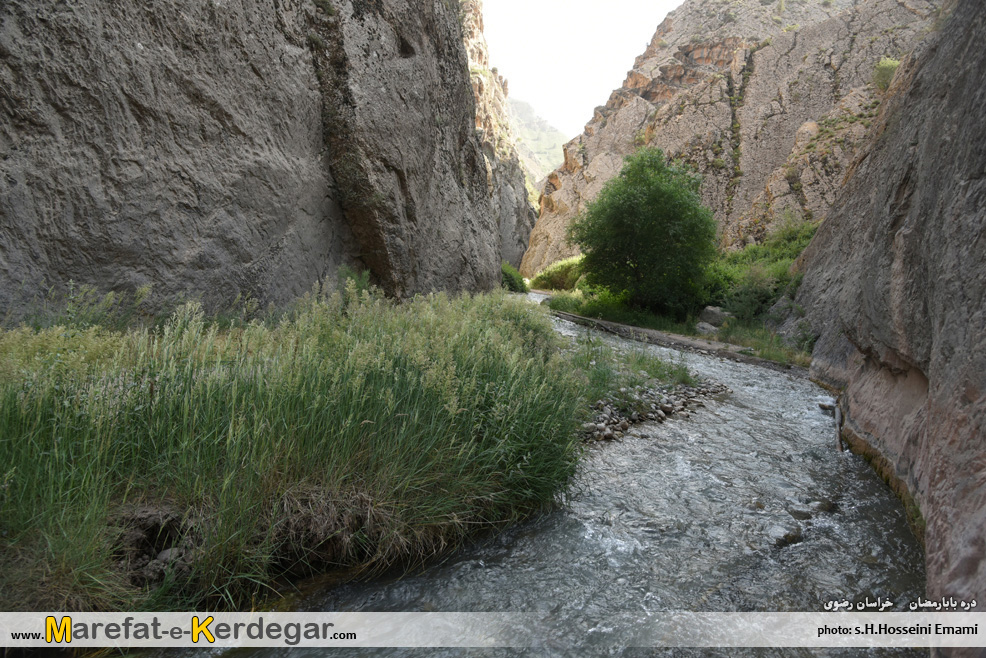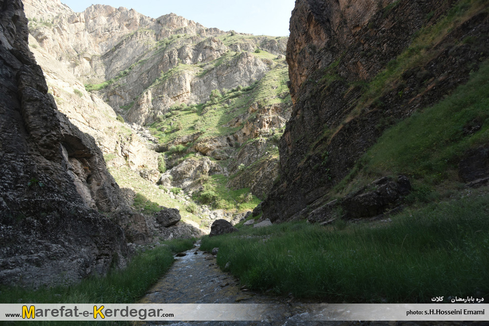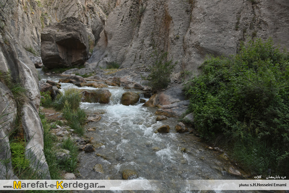 در ابتدای مسیر، دره باز و هموار می باشد اما رفته رفته و با نزدیک شدن به آبشار بابارمضان، دره باریک تر می شود.