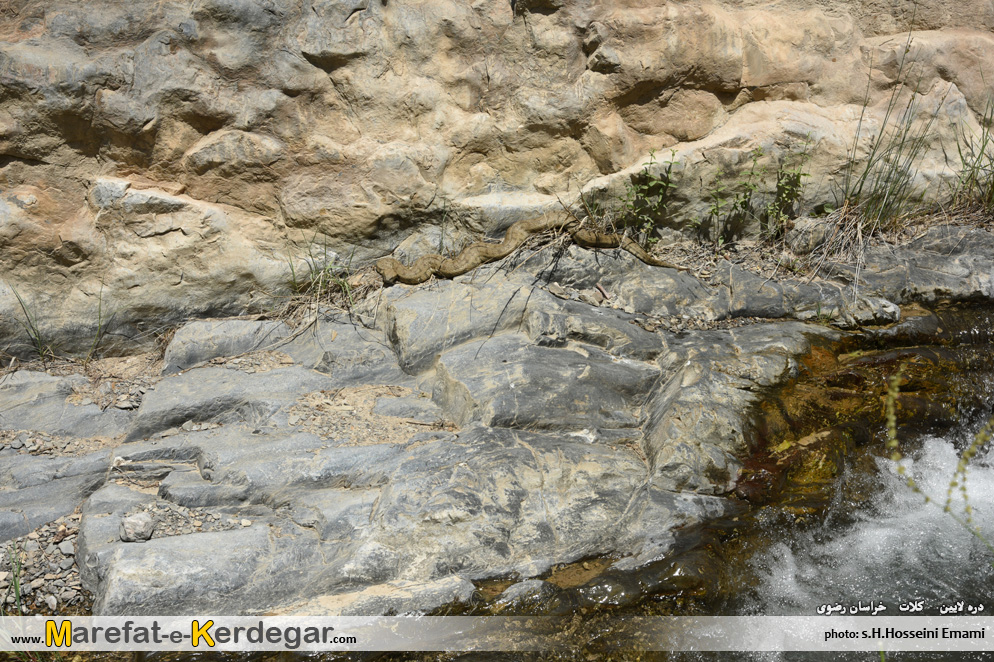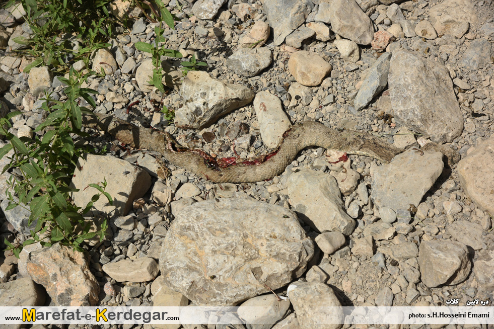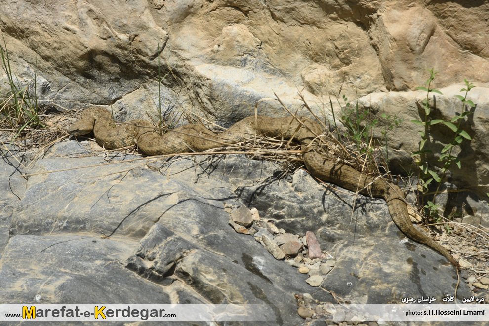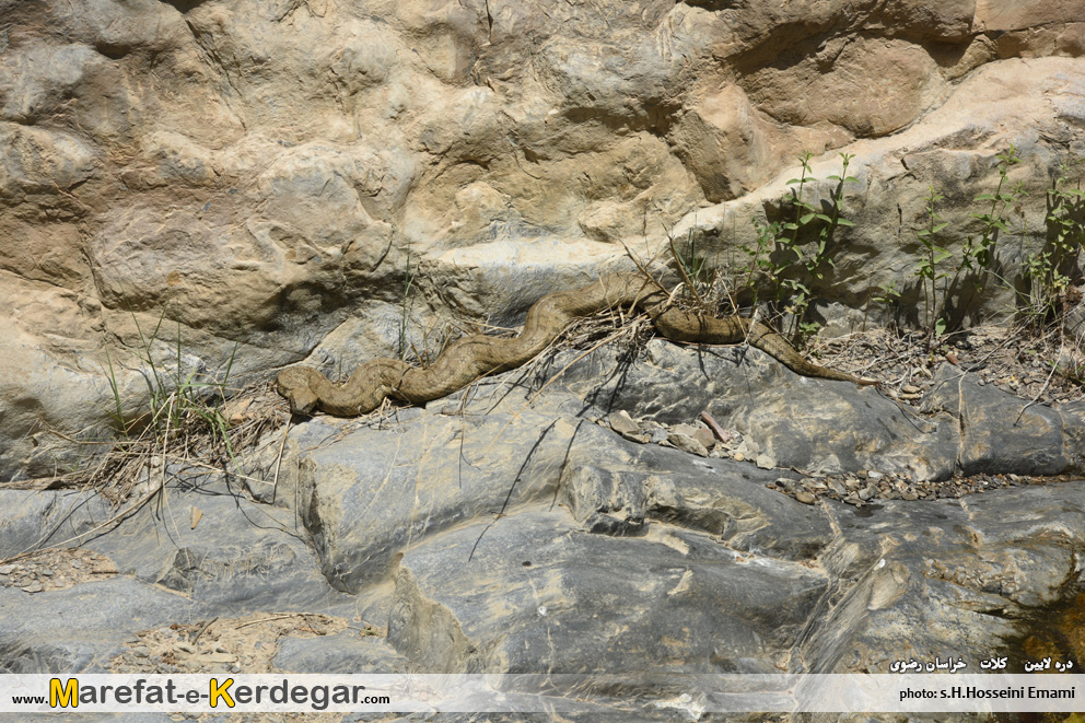 در میان مسیر، به ماری مخوف و بزرگی برمی خوریم که در حال آفتاب گرفتن بود.