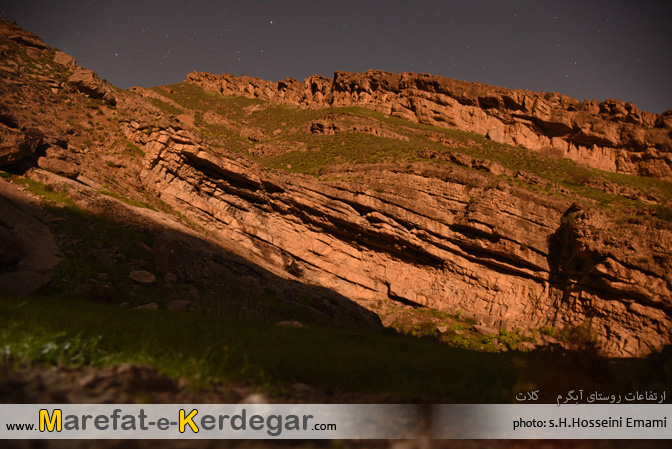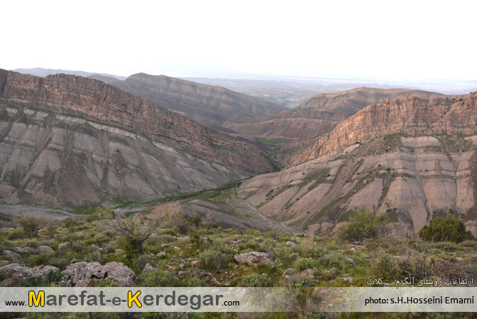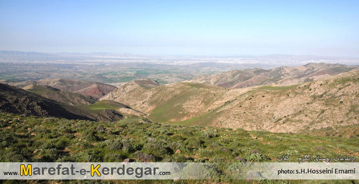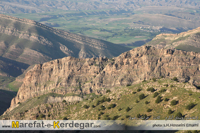 اکنون بر روی خطّ الرّأس قرار داریم و روستای آبگرم کلات، دیده می شود.