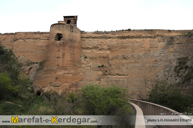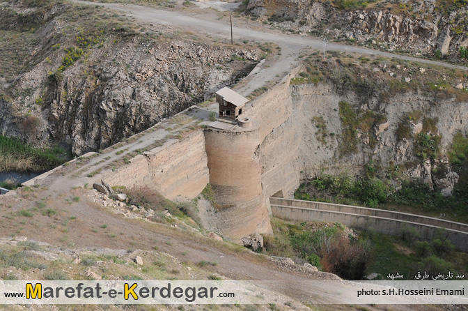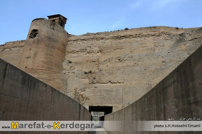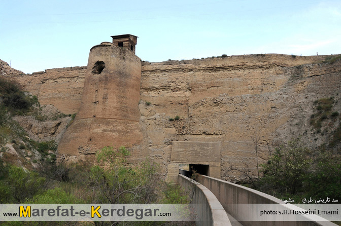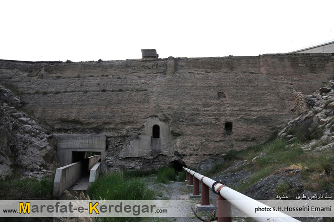 در زمانی دور و در حالی که خبری از تاج بزرگ و با عظمت سد طرق نبود، مردم آن زمان برای استفادۀ بهینۀ از آب، بندی را ساختند که اکنون به بند تاریخی طرق مشهور است. این بند که در آن زمان برای خود، سازه ای عظیم محسوب می شده است، اکنون در برابر سد جدید، هیچ حرفی برای گفتن ندارد و هیبت خودش کاملاً را از دست داده است. این بند، برای دوست داران بناهای تاریخی، سوژه ای جالب به حساب می آید، اما چون تاج سد جدید، در کنار این بند قرار گرفته و حضور افراد در محوطۀ سد، ممنوع می باشد، از حضور گردشگران محروم مانده است.