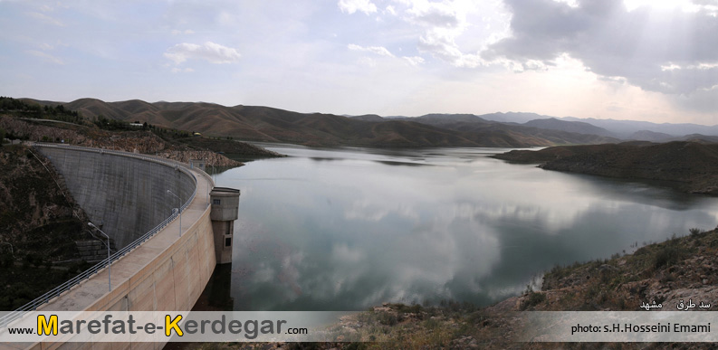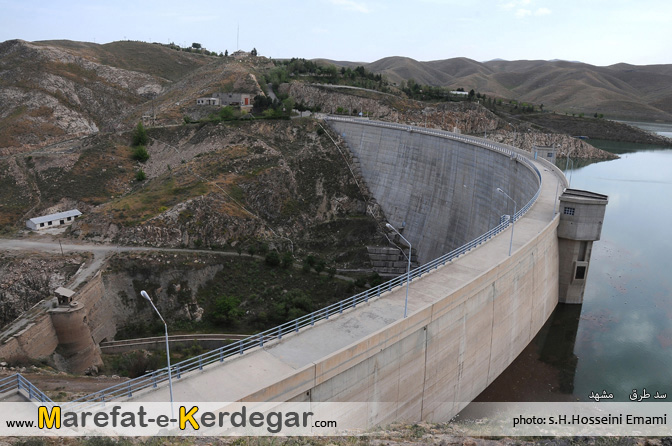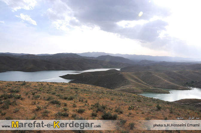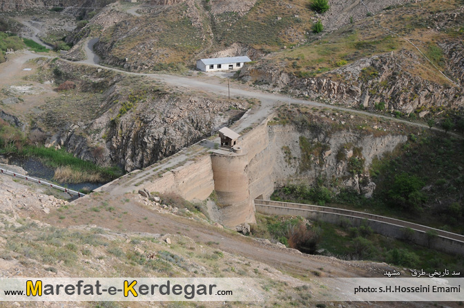 پیچ و تاب رودخانه ای که در نهایت به تاج سد طرق می رسد.