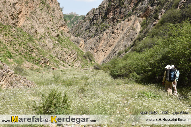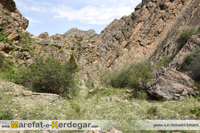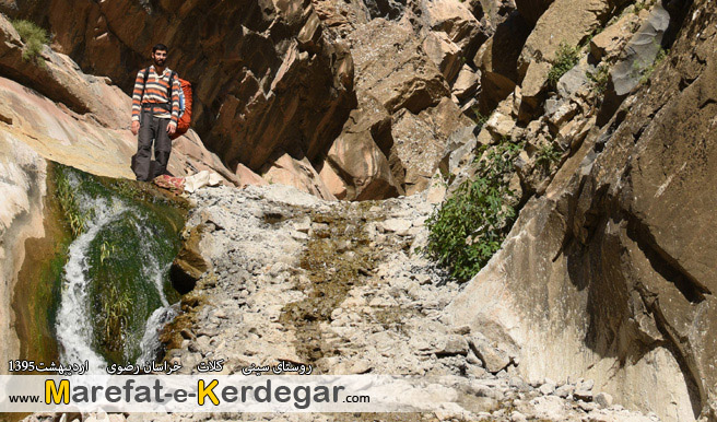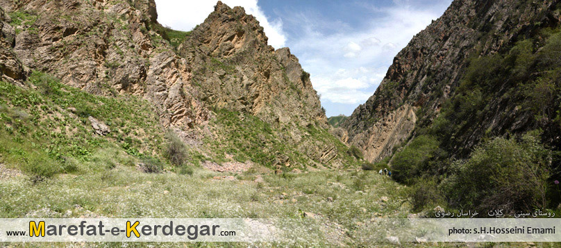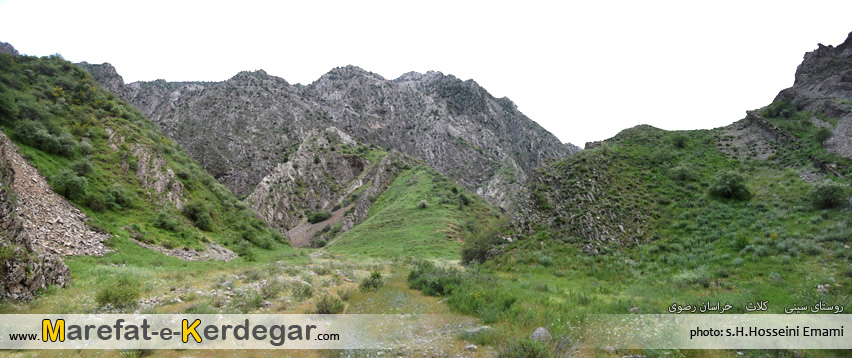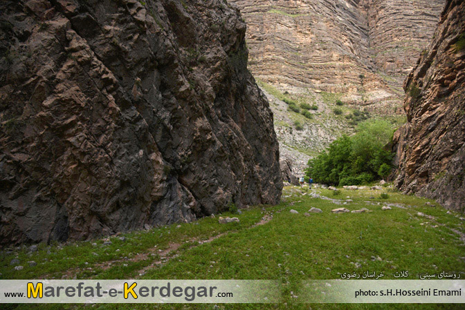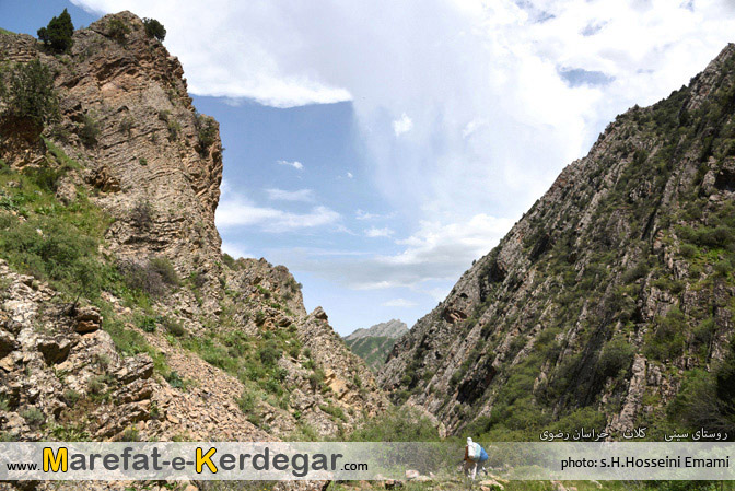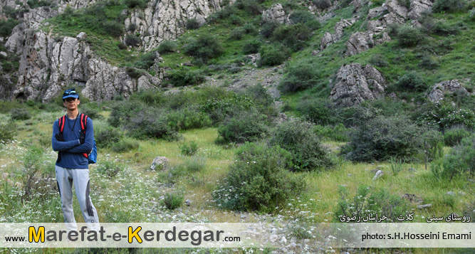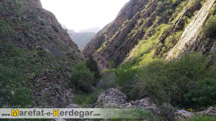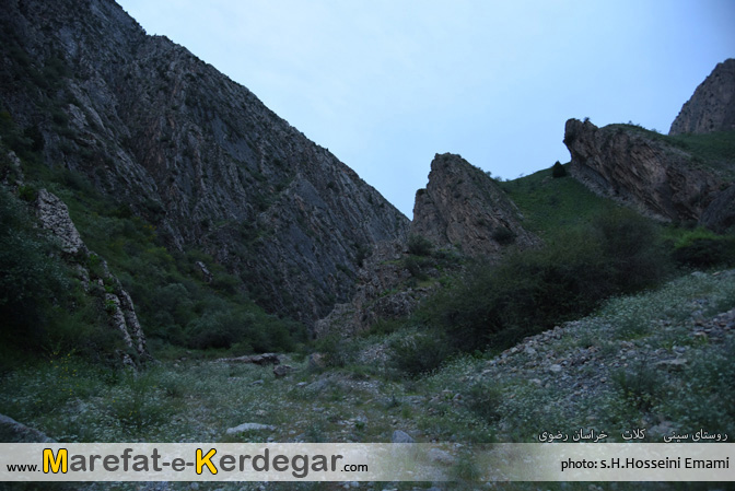 رشته کوه هزارمسجد با ارتفاع نه چندان بلندش، دره ها و رودخانه های بسیار زیادی را پدید آورده است. طبیعت این رشته کوه، به دلیل کم تردد بودن و صعب العبور بودنش، معمولاً بکر و دست نخورده باقی مانده است. من در یکی از برسی های خود در گوگل ارث، دره ای را مشاهده کردم که در کنار روستای سینی و در فاصلۀ 30کیلومتری غرب شهر کلات قرار گرفته است. خیلی سریع جزئیات و مختصات آن را در جی پی اس قرار داده و در یک آخر هفته، به اتفاق 4نفر از دوستانم، از مشهد عازم منطقۀ کلات و روستای سینی شدیم. روستایی که به دلیل نفوذ کمترِ فرهنگ شهری، همچنان سنتی و دست نخورده باقی مانده بود و کاملاً حال و هوای یک روستای قدیمی را تداعی می کرد. خوش بختانه هنوز ساخت و ساز، که یکی از عوامل ویران گر طبیعت است، در این روستا به چشم نمی خورد. حتی تعداد الاغ های روستا، از موتورها بیشتر بود.
